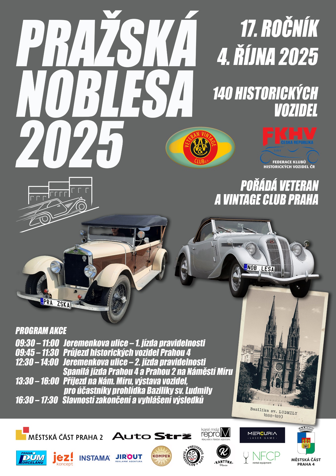 náš Veteran a Vintage Club si Vás dovoluje pozvat na letošní, 17. ročník Pražské Noblesy, která se tradičně koná první sobotu v říjnu - 4.10.2025
